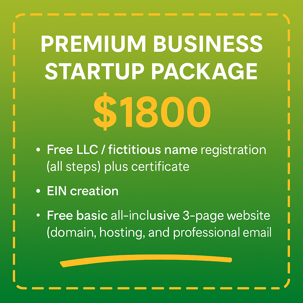 Everything you need to start your business the right way — from legal setup to a fully functional website. This prize includes your LLC or Fictitious Name registration (all steps included), EIN creation, and a custom 3-page website with domain, hosting, and professional email. It’s the ultimate launchpad for aspiring entrepreneurs ready to take their business to the next level.